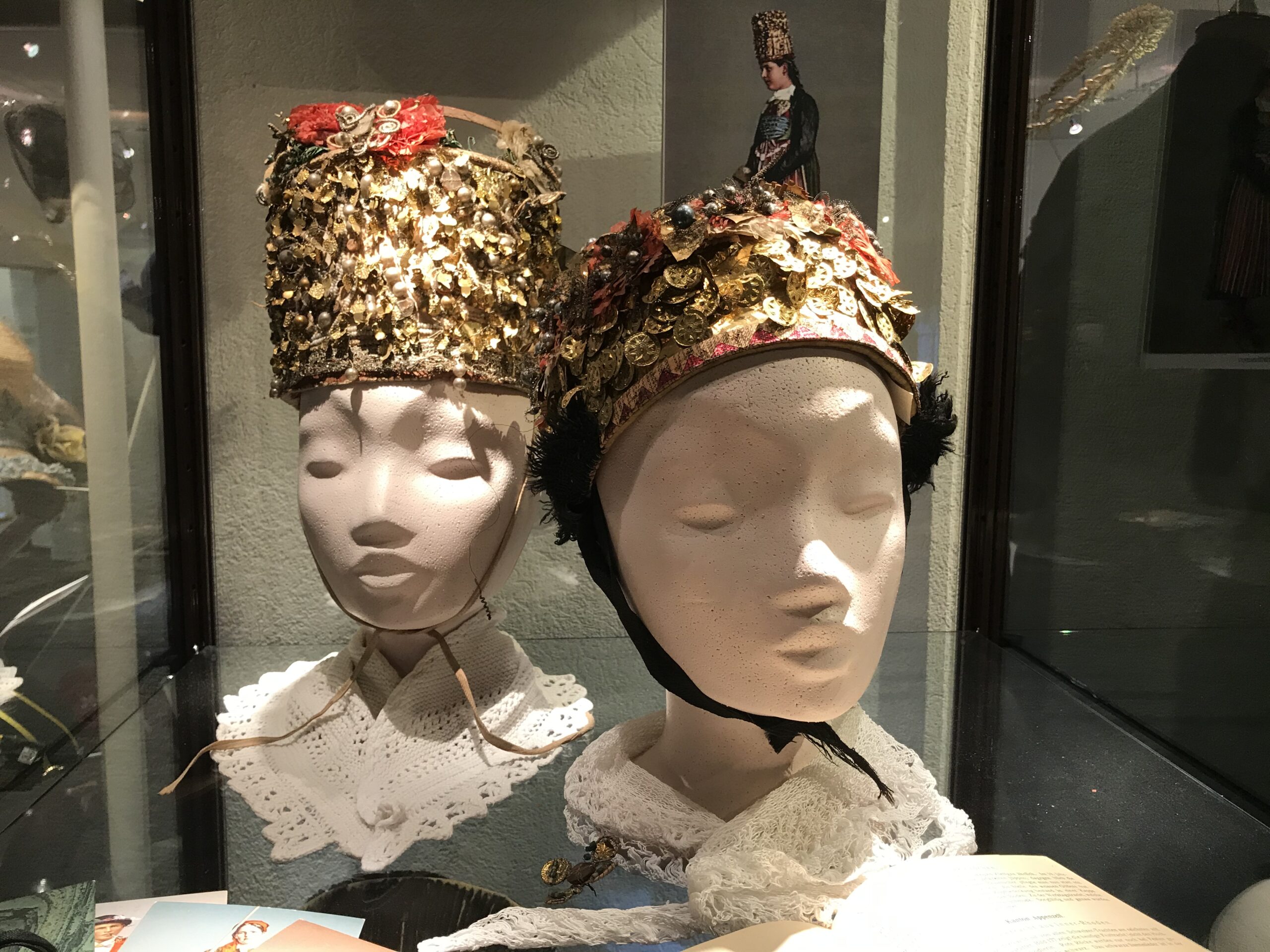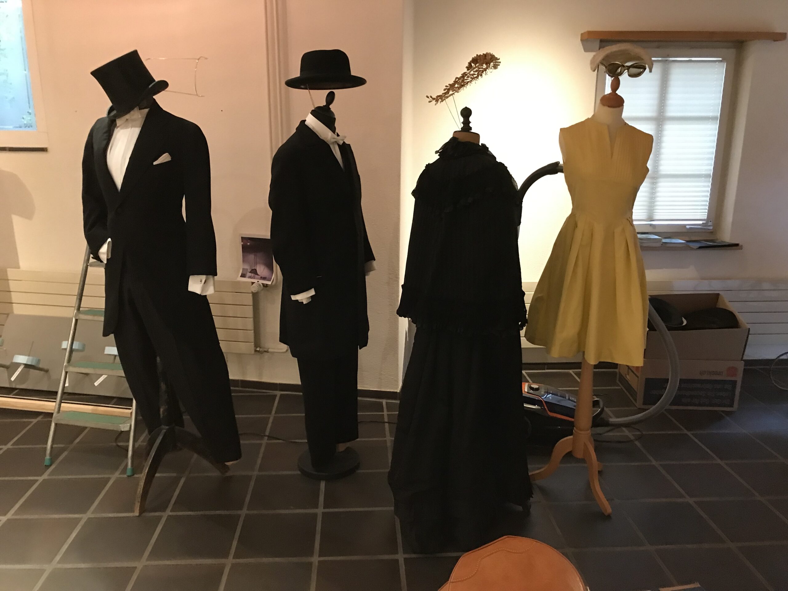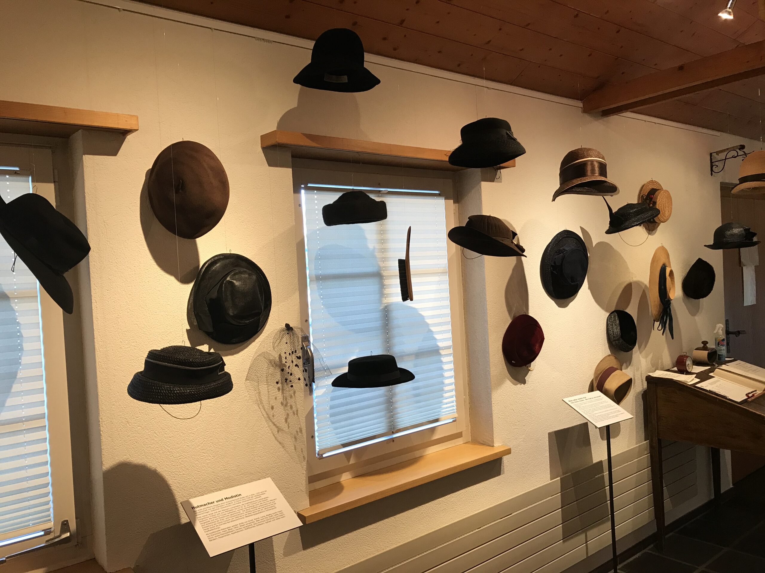 Ergänzt wird die Ausstellung durch Hutkreationen von Manuela Rami im Kabinett im ersten Stock.